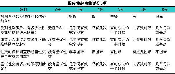 使用国际勃起功能评分5项(IIEF-5)是诊断和评估ED的方便、i有效的方法(表14-20)。