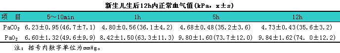 5.生后12h内可参照该时期新生儿血气值来判定(见下表)。
