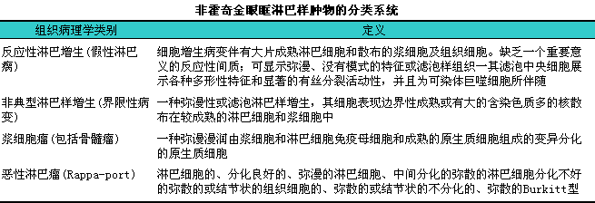 非霍奇金眼眶淋巴样肿物的分类(表14一1)