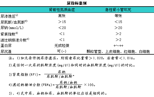 (1)肾前性氮质血症,l可由尿指标鉴别,l如下表。