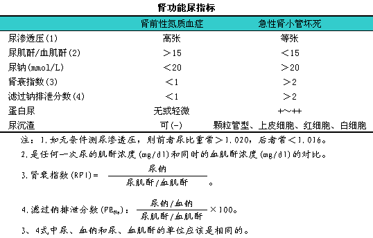 (1)肾前性氮质血症:i可由尿指标鉴别,l如下表。