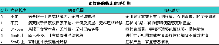 全国食管癌防治会议给出的食管癌临床病理分期见下表。