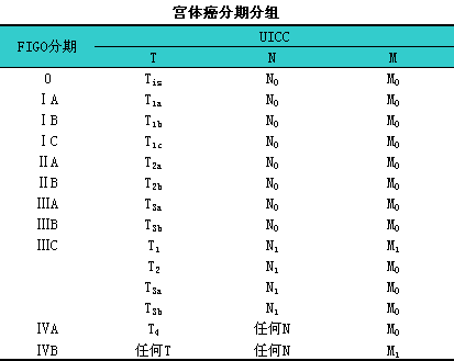 子宫体癌分期分组(表6-18)FIGO UICC