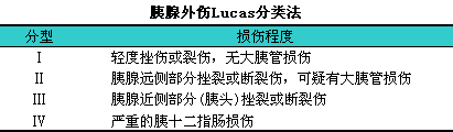 胰腺外伤Lucas分类法见下表。