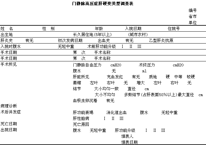 门静脉高压症肝硬化类型调查表如下所示(见下表)。