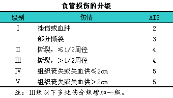 食管损伤的分级见下表。