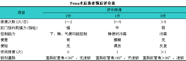 Pena术后患者预后评分见下表。