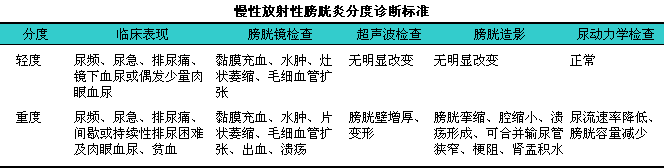 2.照后6个月以上,l平均2~3年逐渐发展成为慢性放射性膀胱炎,l按下表作出分度诊断。