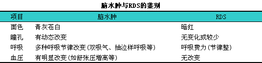 2.鉴别诊断11①高渗性脱水。患儿有引起高渗性脱水的疾病,l可有烦躁、i惊厥和昏迷,l但多见于6个月以内的婴儿,l先有高热、i口渴、i尿少、i数日后出现神经系统症状,l颅内压低于正常或正常,l血浆渗透压及尿比重增高。②脑干脑炎。患儿有发热,l中枢性呼吸节律不整,l可有惊厥、i昏迷;伴有动眼神经炎时,l瞳孔可不等大,l但若不伴明显脑水肿者,l颅内压正常,l有时患者神志清楚。③休克是否伴有脑水肿的鉴别(见下表)。④脑水肿与RDS的鉴别(见下表)。