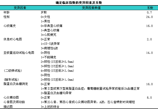即得临床指数。以临床指数>100作为诊断冠心病的标准。