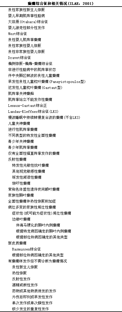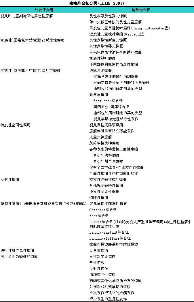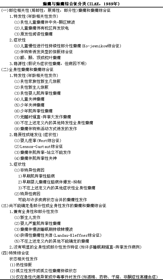 1989年“癫痫与癫痫综合征分类方案”,l除依据临床发作形式及脑电图改变外,l还结合发病年龄、i病因及转归,l对癫痫综合征进行分类(见下表)。