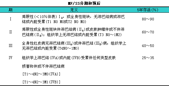 Foss1FM.Sausville1EA.Prognosis1and1staging1of1cutaneous1T1lymphoma[J].Hematol1Oncol1Clin1North1Am,l1995,l9(5):i1019.