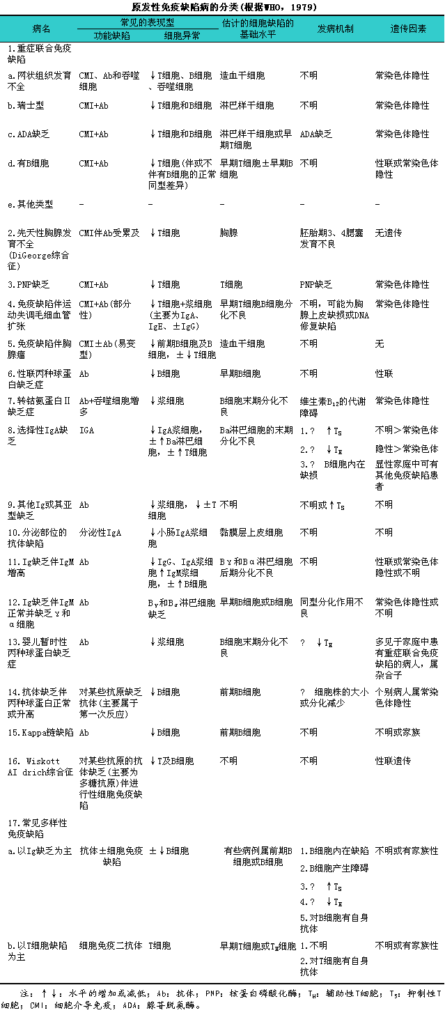 原发性免疫缺陷病的分类
