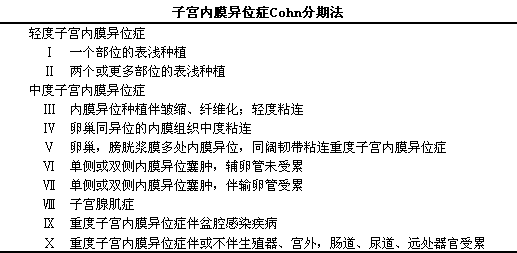 Cohn在1979年根据腹腔镜检结果提出一个新的分期法(见下表),