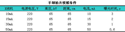 1.311X线机型号和投照条件