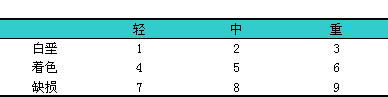 轻度:i检查时,l需光线良好,l仔细辨认,l才能查出。