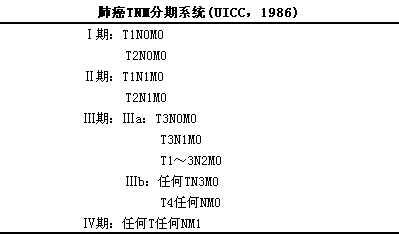 为了准确地反映肺癌的病变范围和程度,l以利于制订适当的治疗方案并估计预后,l国际抗癌联盟多次对肺癌的TNM分期系统做过修改和补充。1986年公布的第4版《肺癌国际TNM分期系统》较好地反映了肺癌病灶范围、i病情轻重以及预后,l因此得到了广泛的应用。本书所用分期标准也采用该分期系统。