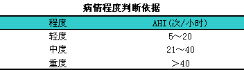 2.OSAHS病情程度和低氧血症病情程度判断见下表。