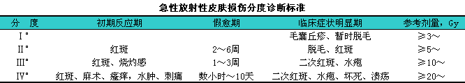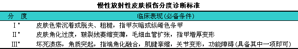 2.慢性放射性皮肤损伤可依据下表做出分度诊断:i