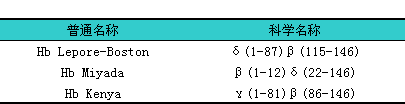 (1)采用单一字母名称的几种异常血红蛋白如HbC、iHbE、iHbS、iHbH。