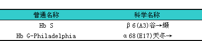 G2、iI2、iJ2等字样不再使用。同时含有异常α链和异常β链的杂交血红蛋白,l也可用普通名称和科学名称来表示。举例:i