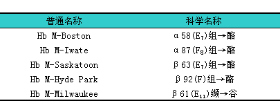 高铁血红蛋白:i字母M保留,l用以表示一类特殊的异常血红蛋白。该异常血红蛋白的特点是:i容易形成高铁血红蛋白,l可伴有高铁血红蛋白症。举例:i