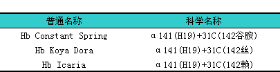 1)由终止密码子突变所造成的珠蛋白链异常,l应当列出在其羧基末端(C)所增加的残基数目,l以及α链142位和β链147位的残基名称。举例:i