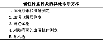 临床症状:i本病的临床症状很不典型,l约1/4病例有头痛、i疲乏、i食欲减退及作呕等,l约2/3病例有腰痛、i尿频、i排尿时不适感。约60%~80%的病例有高血压症状。贫血和肾性电解质丢失较少见。尿检查和肾功能试验对诊断有决定性的意义。其检查项目见下表。