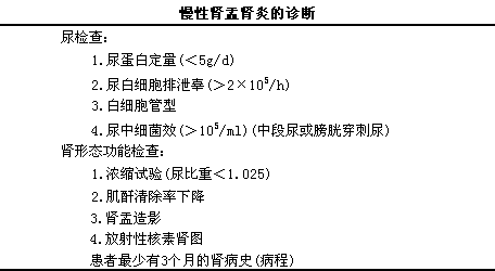 根据上述检查方法,l作者认为具备下列条件时可诊断为慢性肾盂肾炎:i