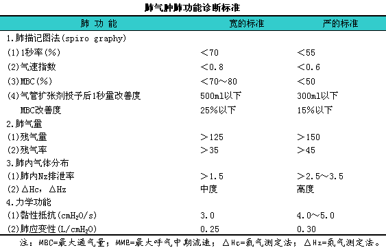 1)标准Ⅰ:i除肺描记图外,l应进行肺总量、i肺内气体分布及其他可以作的详细肺功能检查,l得以诊断者。