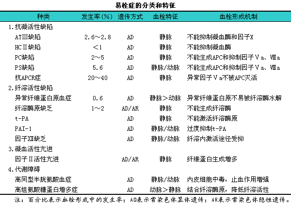 易栓症的分类