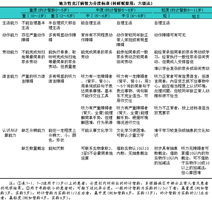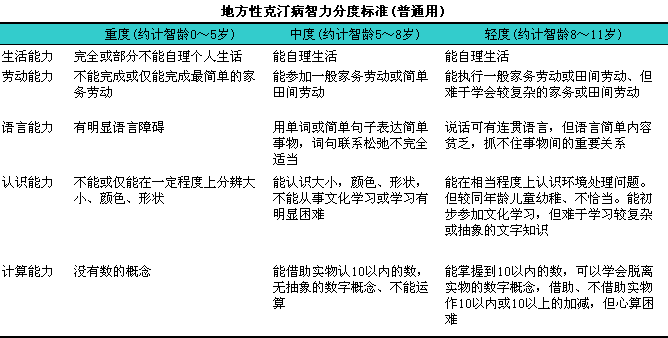 智力分度见下表。