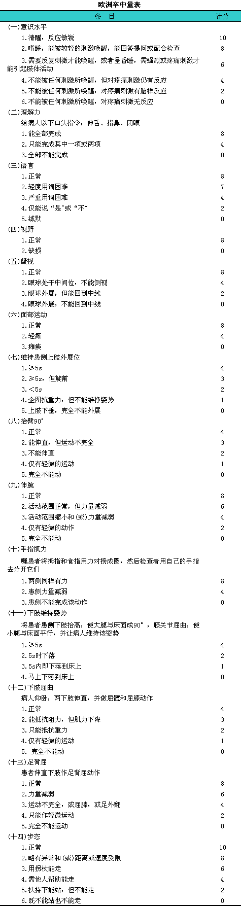 卒中量表(一)
