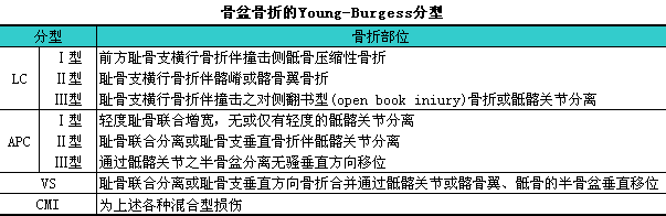 在传统分类的基础上,l为了更好地理解骨盆骨折的致伤原因,l正确地评估骨盆骨折的严重程度,lYoung-Burgess在Pennal和Tile分型的基础上进行改良,l根据撞击方向将骨盆骨折分为侧方挤压(LC)、i前后方向挤压(APC)、i垂直剪切(VS)以及混合机制损伤(CMI)四种类型:i并按损伤的严重程度分出亚型(见下表)。对正确处理骨盆骨折有重要指导意义。