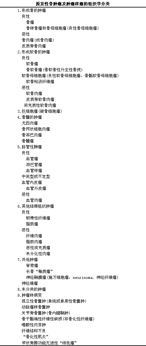原发性骨肿瘤以及肿瘤样病的组织学分类(见下表)。