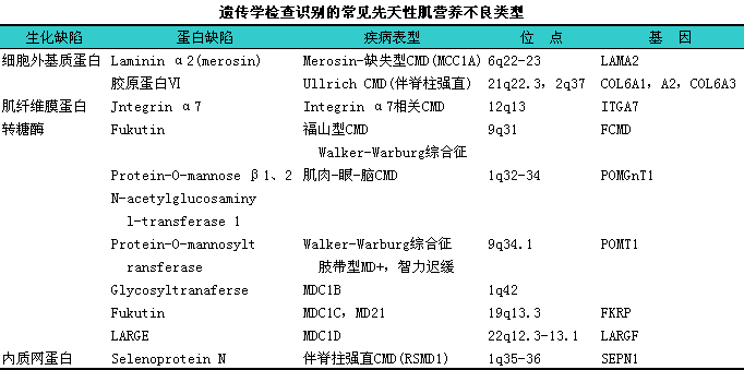 先天性肌营养不良是一组临床和遗传各异的疾患,l患者在出生时或出生后最初几个月内即表现肌张力低下,l肌无力、i挛缩和运动发育迟缓。随着对先天性肌营养不良遗传学基础和发生机制的认识,l分类有了新的进展(见下表)。