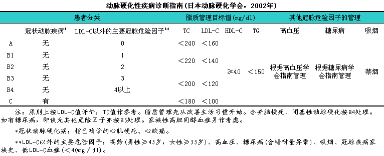日本动脉硬化学会曾于l997年制定了《高脂血症诊疗指南》(前版指南),l包括高胆固醇血症诊断标准、i药物治疗适应标准和治疗目标标准。该指南发表以来,l广为临床普及,l其诊断与管理(监护)标准为多数临床医生所推崇应用,l并权作为冠状动脉疾病之相对风险性标准。