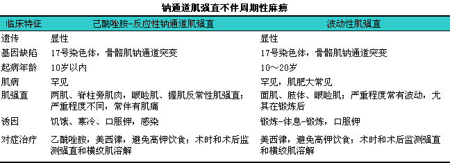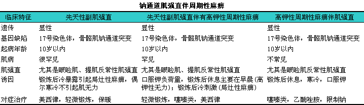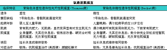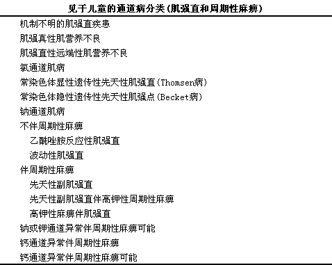 通道病是一些与特殊离子通道(包括氯、i钠、i钾、i钙)的基因突变后相关的疾病,l临床表现有肌强直,l伴或不伴周期性麻痹(见下表)。