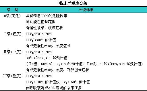 由于COPD是一个渐进性疾病,l早期防范尤为重要。严重程度分级中将具有危险因素及慢性咳嗽、i咳痰症状而肺功能尚属正常者定为0级,l即高危患者。这是基于不少COPD患者在慢性咳嗽、i咳痰症状数年后,l方出现气流受限的自然病程而设置的。对这部分患者应定期进行肺功能监测,l以及早发现气流受限。