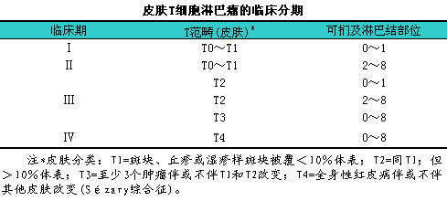 Lamberg等根据临床体征,l提出CTCL的临床分期,l见下表。