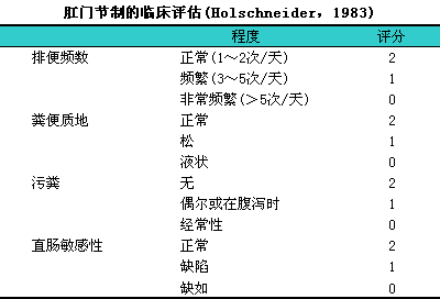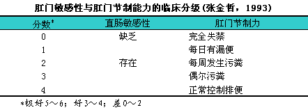 肛门节制功能临床评分法见下表。
