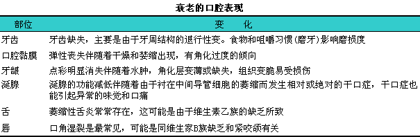 口腔组织像身体其他各处的组织一样,l明显地随着衰老而变化(见下表)。