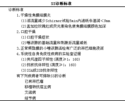 新的SS诊断标准如下表。
