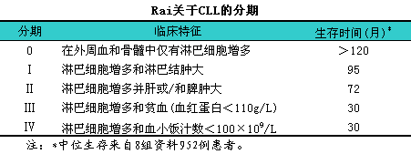 现在使用Rai和Binet两个分期系统各有优缺点.这次CLL国际专题讨论会推荐把Binet和Rai方案综合如下(见表):iA1(0)、iA1(I)、iA(Ⅱ)、i先天性白血病的分类1B(I)、iB(Ⅱ)、i和C(Ⅲ)、iC(Ⅳ)。
