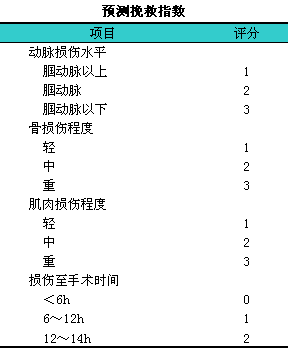 1987,lHowe1等提出了预测挽救指数(predictive1salvage1index,1PSI)(见下表),l总评分超过8分为截肢手术适应症。