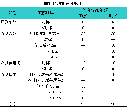 面神经功能评分标准