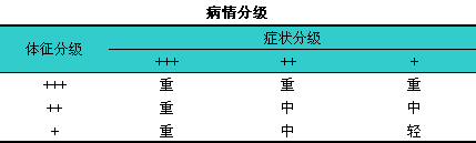 3.根据症状和体征分级将病情分为3级(见下表)。