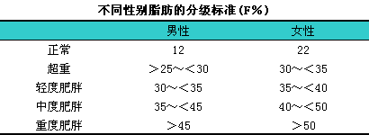 (2)实测体重一般要求采用标准体重法和体重指数法两种方法同时进行,l同时测定脂肪百分率。