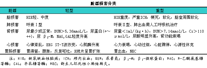 3.肾11肾损害及肾功能衰竭表现:i尿量<lml/(kg·h),l持续24~36h,l尿β-M增高,lBUN>7.14mmol/L(20mg/dl),l肌酐>88.4/μmol/L(>lmg/dl),l尿N-乙酰-β-D-氨基糖苷酶(NAG)和尿β-D-半乳糖苷酶(GAL)升高。