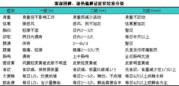 寒湿困脾、湿热蕴脾证症状轻重分级